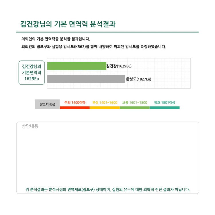 LAM검사는 기본 면역력과 음식 면역력을 한번에 검사, 나의 면역력을 높여주는 음식을 찾는 검사입니다. 음식 면역세포 활성도 검사 결과로 항암 면역식단 구성을 지원합니다.